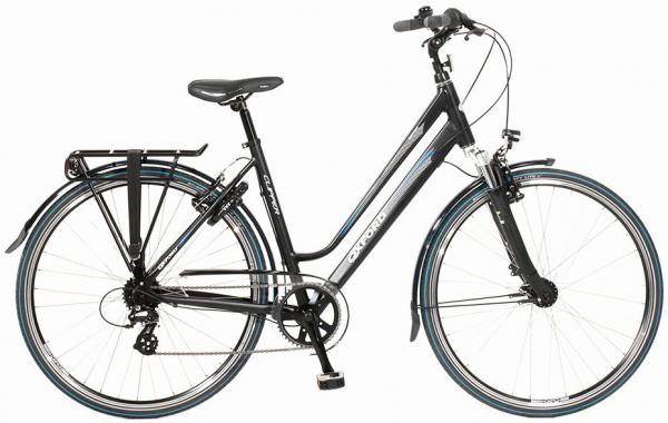 - Uitgerust met fijne aluminium spatborden, verlichting op naafdynamo, bagagedrager en staander
